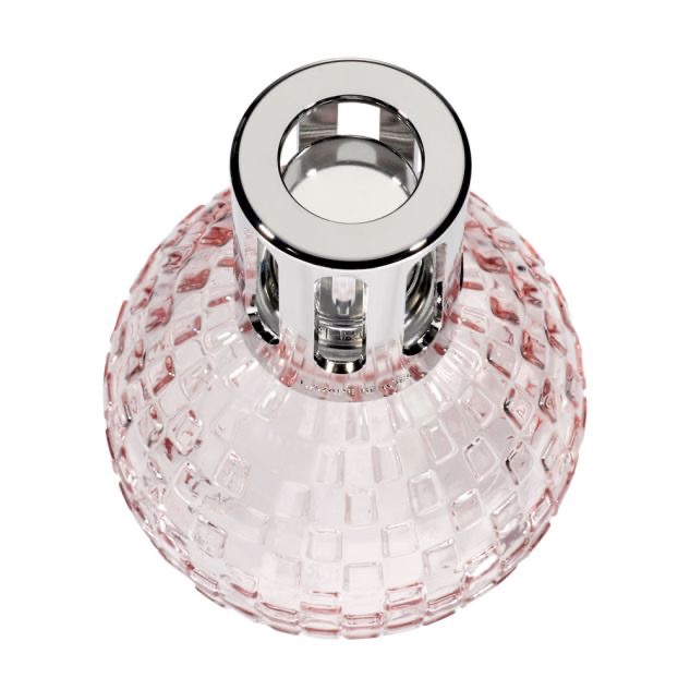 Het Lampe Berger Giftset Disco Rose onderscheidt zich door zijn iconische ronde vorm en het grafische dambordmotief, verfijnd uitgewerkt in het glas met spel van reliëf en diepte. Dit eigentijdse design brengt een moderne en dynamische uitstraling in uw interieur, versterkt door een zachte roze tint die charmeert met haar elegantie en verfijning.
