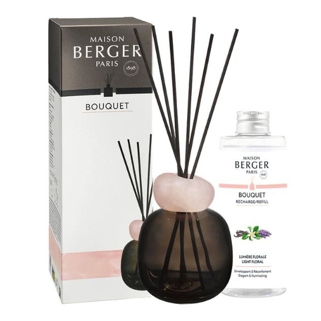 Een heerlijke geur voor in deze moderne design fles ‘Mineral’. Een nieuwe manier om de geur van Maison Berger te verspreiden in jouw woning. Een exclusieve fles van glas met roze steen ‘mineral’ en zwarte sticks. Een tijdloos ontwerp om jouw interieur op een subtiele maar continue wijze te voorzien van een aangenaam parfum. De sticks zijn vervaardigd met polymeertechniek en zorgen voor een optimale verspreiding van het parfum.